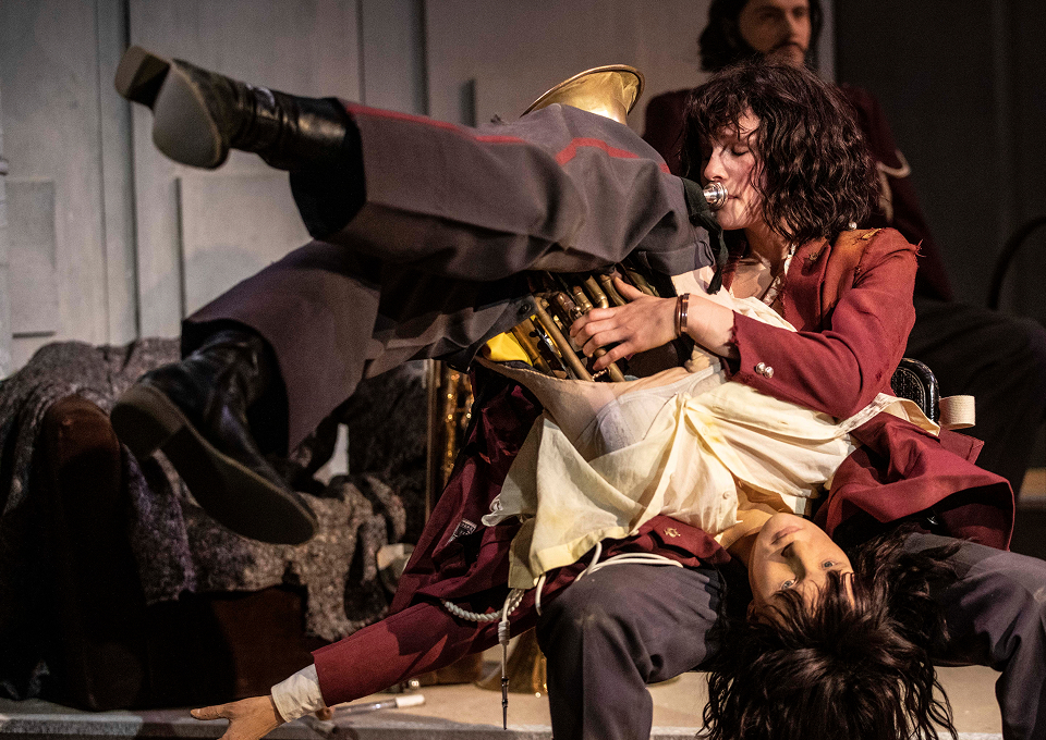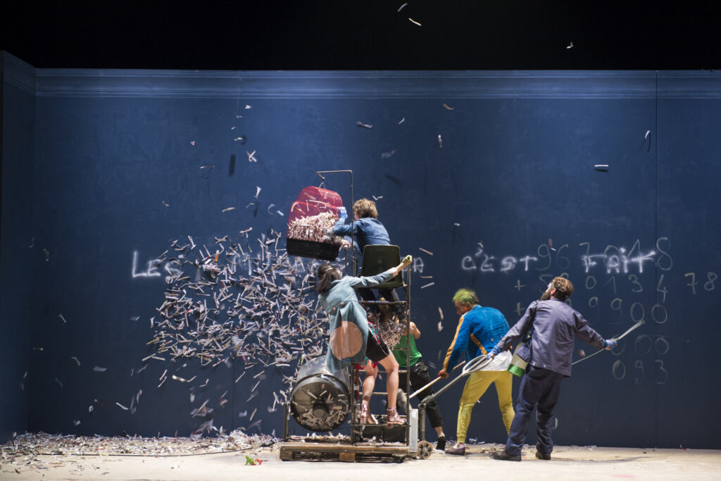 Une tribu de musiciens subsiste dans une atmosphère suffocante et fait théâtre du souffle même. Cette pièce sans paroles s’écrit au croisement du théâtre d’objets – machines – marionnettes et du théâtre musical.