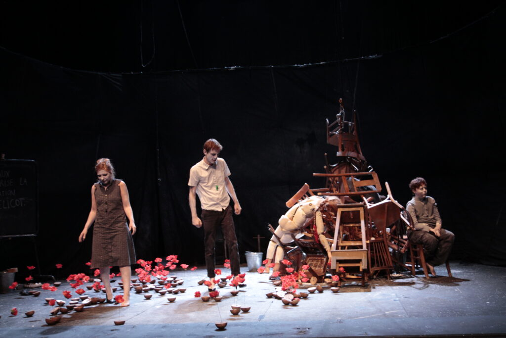 « Rebatailles » s’ inspire de la logique d’un rêve selon lequel on peut recréer la vie d’après la mort : en fabriquant des marionnettes. Sur le plateau, un musicien et quelques tourne-disques mettent trois êtres en éveil : ils sont mi-vivants, mi-pantins.